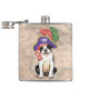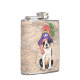 The flask itself is fine. It’s a cheap flask, obviously bought in bulk, however am prepared to overlook that. Given that it is a personalized item, I would have liked to have seen gift boxing instead of the generic packaging. Terrible printing, and/or quality. It’s a cheap, tacky vinyl. It is not cut straight and is also applied in a way that it is overhanging the bottom, causing the glue to catch on items and it will eventually roll and tear, damaging the wrap.