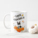 Boston Terrier Pumpkin Fall Leaves Halloween Mug - Features a cute Boston Terrier Puppy with pumpkins and fall leaves! Happy Halloween!