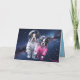 A dog Valentine's Day card featuring a Boston Terrier couple in a flying saucer going to the moon.