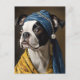 Boston Terrier With Pearl Earring Fine Art Parody Postcard