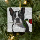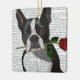 Boston Terrier with Rose in Mouth Ceramic Ornament