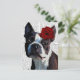 Boston Terrier with Rose on Head Postcard
