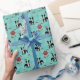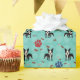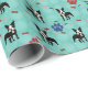 A Boston Terrier dog with a scattering of bones and paw tracks. This design is intended to tile seamlessly.