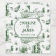 This Boston Toile is the perfect design for your offbeat wedding. It looks traditional from a distance, but there are details any true local will relate to, like construction cranes and bewildering traffic signage. The simple forest green and white colours coordinate with almost any theme. And the style blends just as well with an elegant, city chic, or moody aesthetic as it does with a botanical, outdoor vibe.