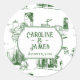 This Boston Toile is the perfect design for your offbeat wedding. It looks traditional from a distance, but there are details any true local will relate to, like construction cranes and bewildering traffic signage. The simple forest green and white colours coordinate with almost any theme. And the style blends just as well with an elegant, city chic, or moody aesthetic as it does with a botanical, outdoor vibe.
