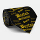 Boston Yellow Fonts neck tie designed with different bright yellow fonts on a black background.