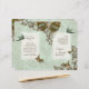A beautiful, fun and inexpensive option for combined wedding and reception programs. These will be shipped to you flat and you will need to fold them in 1/2 or most local print shops will do this for you at a nominal charge. NOTE: DO NOT SELECT THE CARD STOCK OPTION FOR THIS! This is a flat printed program for ceremonies or for receptions. COLOR PALETTE: cream, tan, aqua blue, teal blue, chocolate brown, green and gold. DESIGN COLLECTION: This artwork is a mix of brand new watercolors by Audrey Jeanne Roberts and layersof vintage art elements including:Carved etched printer's ornament decorative etchings with swirls, floral elements flowers, leaves and baroque flourishes. This vintage inspired wedding collection has a complete ensemble of products and can be created in several colorways. If you would like it to match your wedding let us know via email and we'll be happy to assist you. This design consists of a chocolate brown carved swirl flourish detail paired with a blue vintage bird and a aqua blue, yellow and black botanical butterfly. Various background colours are available.