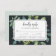 Elegant botanical RSVP card features green watercolor leaves and foliage in a vintage style, framing your desired RSVP date and custom accept and decline wording. Add your entree selections beneath to allow guests to indicate their meal choice ahead of time. A rich off-black background adds dramatic appeal. Designed to match our Botanica Night invitation collection.