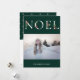 Winter botanical boughs, branches, and berries, adorned "NOEL", in festive emerald green, flat holiday photo card.