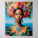 An image of a botanical African princess with silver jewellery and leaves and flowers. This is an image created by AI with floral theme design.