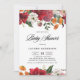 Invite family and friends to your event with this whimsical and botanical baby shower invitation. It features white, red, purple, blush and orange amaryllis, peonies, ranunculus and chrysanthemums with a matching floral pattern. The colours are perfect for fall and Christmas baby showers. Personalise by adding names, date, time, venue and other details.