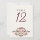 Botanical Art Floral Paisley Wedding Table Number