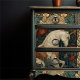 William Morris Style Decoupage Craft Furniture Upcycling Tissue Paper. I created this tissue paper with a focus on craft and upcycling projects, bringing together a kind faced unicorn, delicate filigree details, red poppies, and layered jade foliage. The repeating pattern works beautifully in decoupage, whether applied to small boxes, trays, or larger furniture pieces, giving them a new bohemian character.