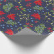 Elegant wrapping paper with botanical autumn illustration. Bright maple, holly, mistletoe and juniper pattern on dark blue background.