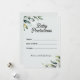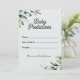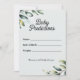 Add a touch of fresh greenery and timeless charm to your baby shower with this botanical baby predictions game card, designed with modern simplicity in mind. Featuring elegant watercolor eucalyptus branches and soft olive tones on a clean white background, this design exudes natural beauty and calm sophistication. It's the perfect activity to engage your guests and capture their sweet hopes and guesses for baby’s arrival.