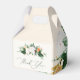 Beautiful wedding gable favour boxes decor to share your special day with your guests. These classic custom printed treat boxes are perfect to decorate your reception or ceremony space and delight your guests with thank you party gifts, sweets, and treats. Soft pastel tones and greenery modern watercolor florals in shades of peach, white, cream ivory, sage and a brighter deeper green. This personalised event supplies accessory coordinates with our full botanical boho floral collection of stationery and event paper goods.