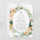 Beautiful baptism christening invitations featuring an elegant modern neutral pastel tone watercolor botanical floral greenery frame in soft earth tones of peach, orange, soft blush, yellows, and lots of shades of green from sage green to bright and deeper greens. Your personalised details are displayed in an elevated typography layout that puts the sweet baby girl front and centre.