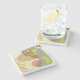 The coasters are gorgeous, a quality feel and heavy weight. They look like a precious archeological find. A rustic stone juxtaposed with a modern floral black and white print. I like the way the print goes slightly imperfect on the cut stone edges giving them a kind-of natural beauty.