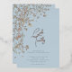 Botanical Caligraphy Wedding Blue Foil Invitation