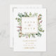 This wedding save the date postcard features painted watercolor eucalyptus, green leaves, red berries, pine branches with a faux gold square frame. For more advanced customisation of this design, please click the "Customise further" link. Matching items are also available.