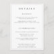 Botanical Crest monogram, wedding details card. Vintage inspired crest adorned with botanical branches. Features, elegant and classy black typography.