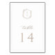 Botanical Crest monogram, wedding table number. Vintage inspired crest adorned with botanical branches. Features, elegant beige typography design style mix of script and bold type. Please note that table number cards must be ordered individually.