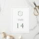 Botanical Crest monogram, wedding table number. Vintage inspired crest adorned with botanical branches. Features, elegant sage green typography design style mix of script and bold type. Please note that table number cards must be ordered individually.