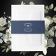 Botanical Crest Navy Blue & White Monogram Wedding Invitation Belly Band