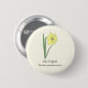 A light yellow button with a botanical daffodil flower illustration in pastel colours (Narcissus pseudonarcissus) and a customisable text: perfect for a birthday gift.