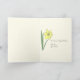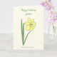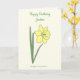 A light yellow birthday card with a botanical daffodil flower illustration in pastel colours (Narcissus pseudonarcissus) and customisable texts (top, bottom and inside): perfect to accompany a gift or to send to your best friend.