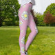 A pink legging with a pattern of botanical daisy flower illustration in pastel colours (Leucanthemum vulgare): a perfect gift for a lover of flowers. Daisy is the April birth flower and is symbolic meanings of kindness, purity, innocence, joy and cheerfulness.