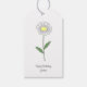A white gift tag with a botanical daisy flower illustration in pastel colours (Leucanthemum vulgare) and customisable texts (bottom and back), on the back a daisy in line art: perfect to accompany a gift to a lover or for Mother's Day.