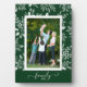 Tabletop plaque with a built-in easel features your favourite photo surrounded with a beautiful border of white foliage, dots and berries on a green background. CHANGE the background colour to MATCH your photo. CHANGE the FAMILY text to anything - TIP: put your text between the two squares to retain the text swashes. Great as a gift or to display your favourite photo in your own home. Your image colours are put directly on the hardboard panel for a stunningly crisp image with an easy wipe clean surface.