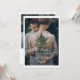 This minimalist, elegant wedding elopement announcement features two of your photos, with a simple botanical and text overlay in white on the front, and room for your additional message on the back. The front also says "we eloped" in handwritten script.