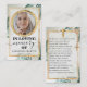 Fully Customised Prayer card with a Decorative cross on the back and prayer verses that you can customise. The prayer card comes with a customisable and personalised photo and with a personalised name and date of the funeral. The design features a script and handwriting/calligraphy style along with elegant and classy fonts.