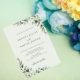 A clean serif font and tasteful layout ensure readability while maintaining a timeless charm. The balanced botanical border frames the couple’s names and wedding details beautifully.