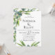 Watercolor silver dollar and flowering willow eucalyptus branches, wedding invitation. Customise text, font style, colour and size.