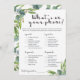 Does this sound familiar to you? Then this greenery What’s On Your Phone game with watercolor eucalyptus leaves is the perfect icebreaker game for your party. It’s super easy to prepare for and simple to play. All guests need to play is a smartphone, one of these printable Whats On Your Phone game cards and a pen.