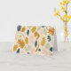 Beautiful autumn pattern of flowers and leaves in sage green, blush pink, golden honey yellow, and teal.