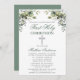 Modern Elegant First Holy Communion Invitation includes watercolor eucalyptus leaves and other beautiful botanical greenery foliage. Silver Cross. Sage Green Back.