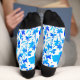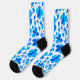 Socks in a watercolor-style floral pattern with flowers in shades of deep blue on a white background. Large, detailed blossoms alongside smaller, simpler flowers and delicate branching stems, for an airy, botanical feel.