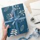 Botanical Floral Leaves Greenery Navy Blue Wrapping Paper