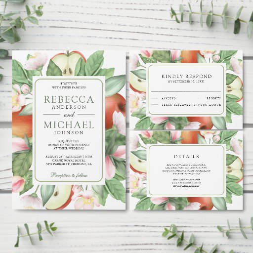 Botanical Floral Red Apple Orchard Wedding Acrylic Invitations