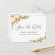 Elegant watercolor botanical forest foliage and garden floral arrangements, wedding save the date postcard. Card features elegant calligraphy "Save the Date", on front and back.
