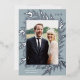 This modern holiday photo card features a hand-drawn foliage frame in silver foil on a chic grey blue background. The typography is classic and elegant. All colours are customisable - background colour, text colour, even the foil colour. Add the "wow" factor with a real foil holiday card this year!