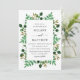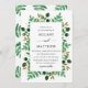 A wedding invitation featuring hand painted watercolor branches and leaves.