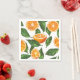 Juicy orange slices and fresh green leaves arranged in a lively botanical composition.