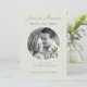 Your photo is showcased in black and white for a classic, editorial feel, seamlessly blended into the design. The warm sage background and botanical details coordinate perfectly with the matching invitation and wedding suite.
