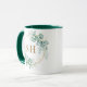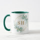 Botanical Gold Custom Monogram For Wedding Coffee Mug. This personalised watercolor eucalyptus greenery, green leaves and a gold circle frame. For more advanced customisation of this design, Please click the "Customise further" link. Matching items are also available.