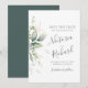 Beautiful Save the date card featuring watercolor eucalyptus and gold leaves.